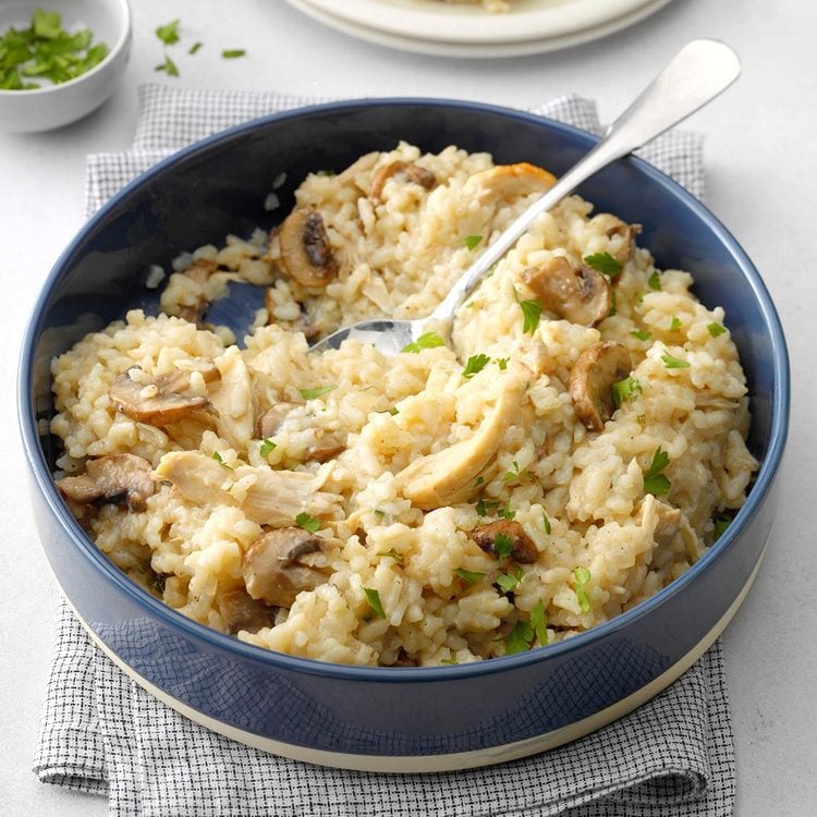 BROWN RICE RISOTTO WITH CHICKEN AND MUSHROOM BOWL