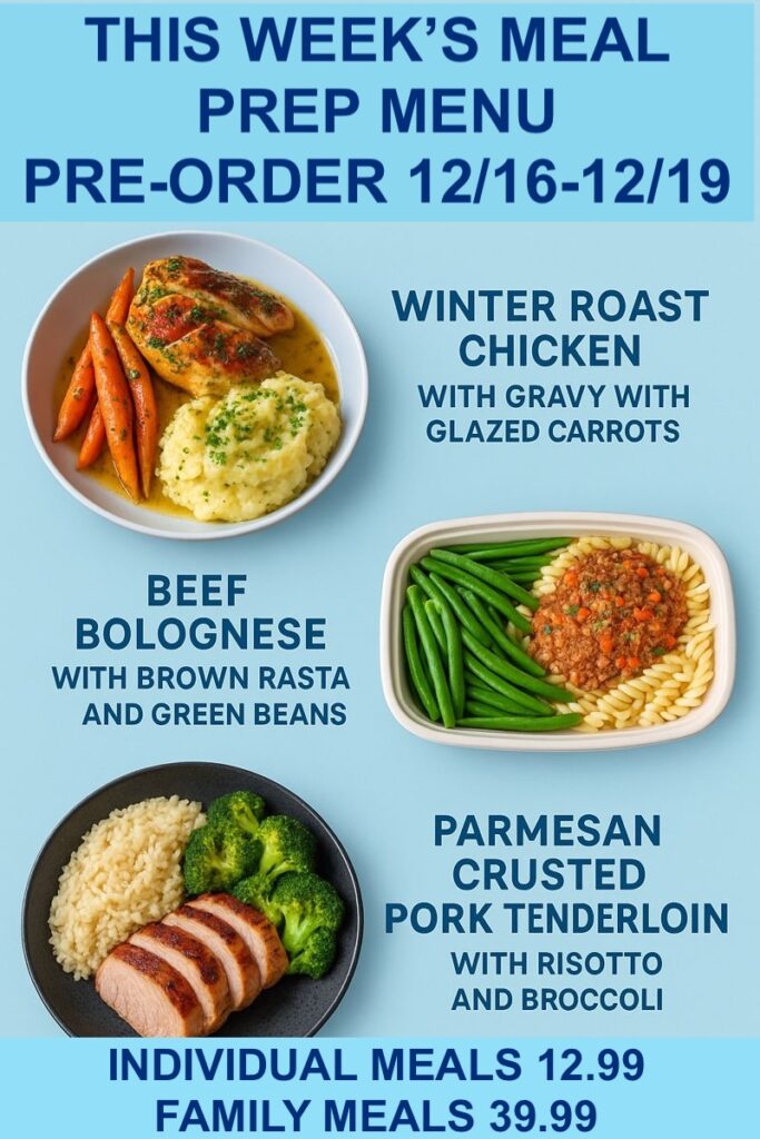 Rock's Kitchen >> Meal Prep >> PRE–ORDER TUESDAY 12/16 THROUGH FRIDAY 12/19 AT 7 PM, AVAILABLE FOR PICK-UP SAT 12/20 after 2 PM, SUN 12/21 10 AM -5PM OR MON 12/22 10 AM—7 PM.
