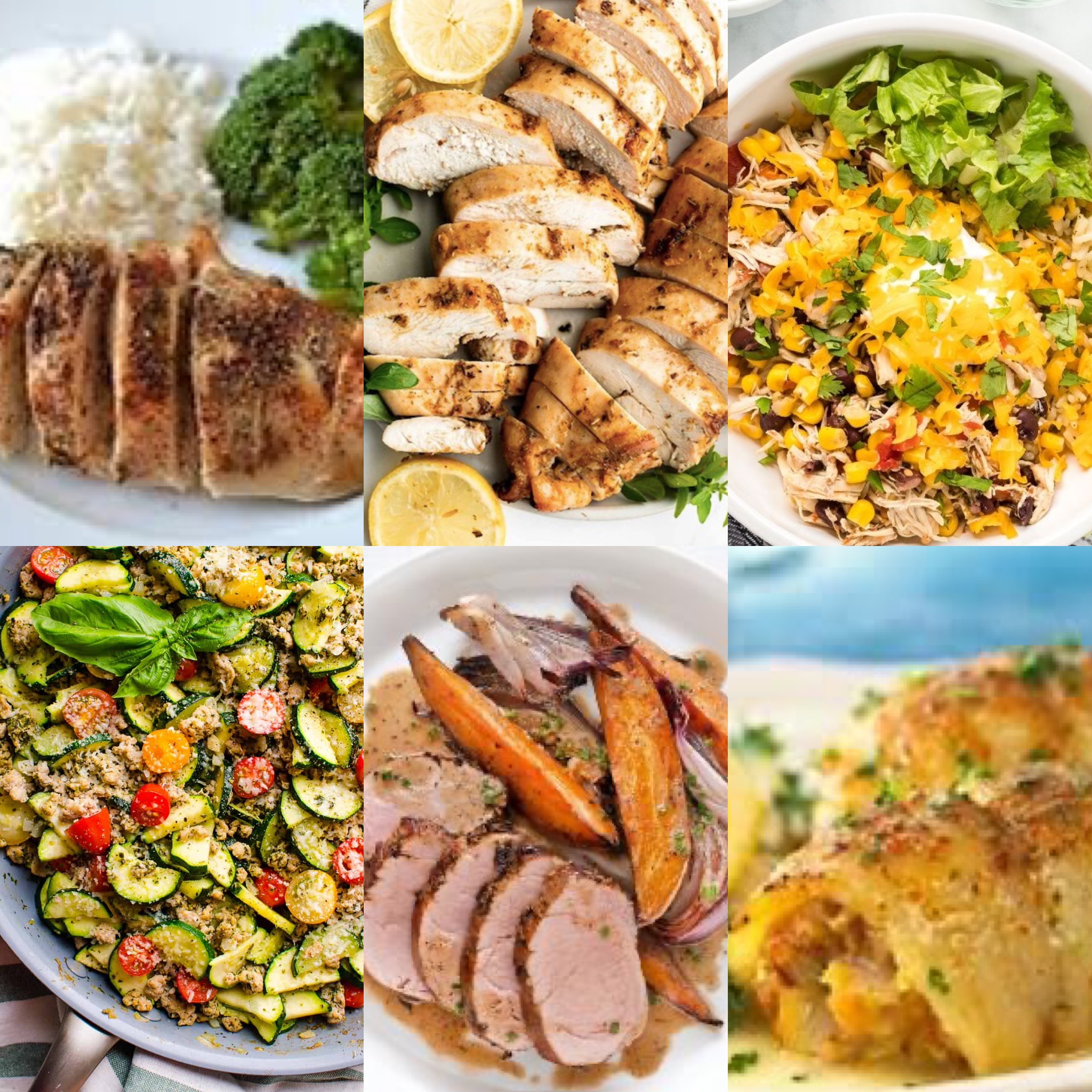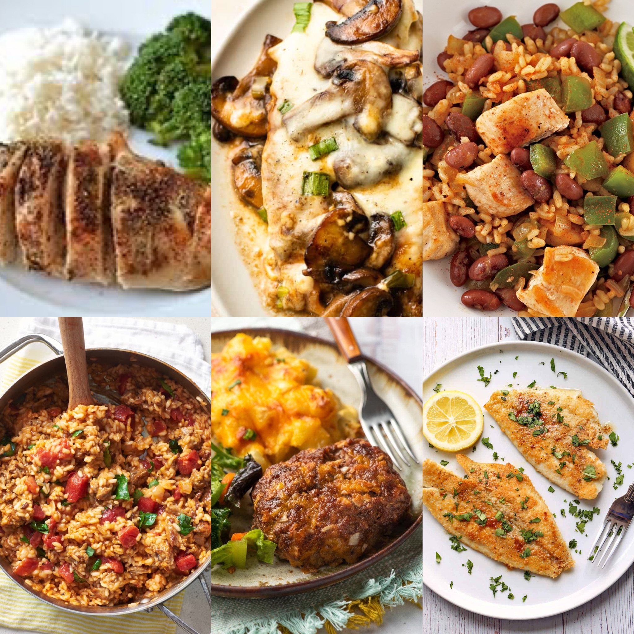 MEXICAN STREET CORN CHICKEN WITH YELLOW RICECREAMY BALSAMIC CHICKEN OVER PENNETURKEY MEATBALLS WITH GREEN BEANS AND GRAPE TOMATOES OVER QUINOACHIPOTLE BBQ BEEF MEATLOAF WITH GARLIC CAULIMASH AND GLAZED CARROTSSHRIMP AND PEPPERS OVER SEASONED RICE