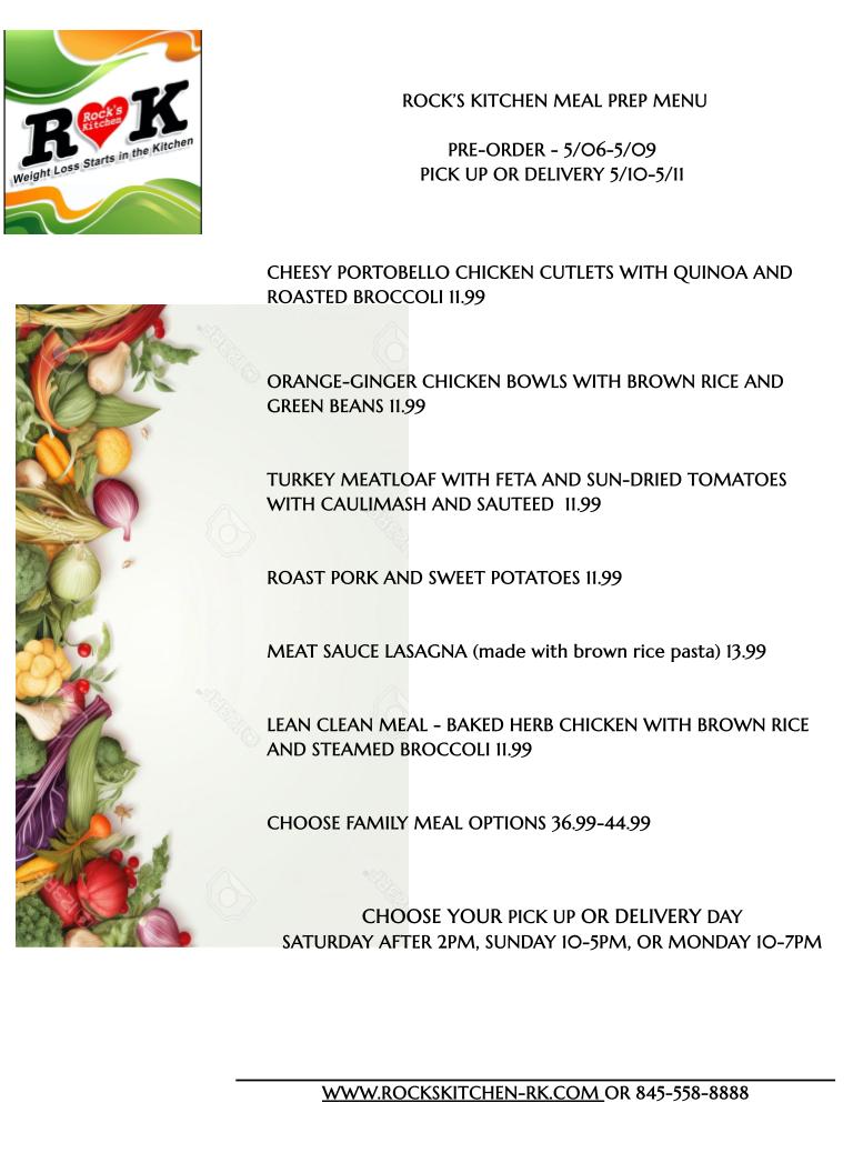 PRE-ORDER NOW CHEESY PORTOBELLO CHICKEN CUTLETS WITH QUINOA AND ROASTED BROCCOLI 11.99 ORANGE-GINGER CHICKEN BOWLS…